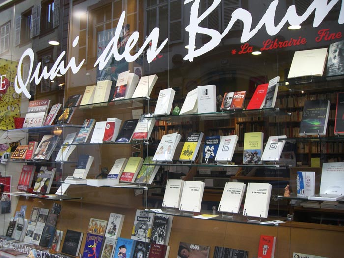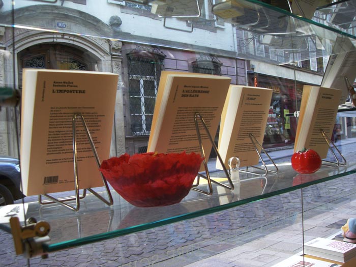 La vitrine de la librairie Quai des Brumes à Strasbourg accueille les livres de La dernière goutte.