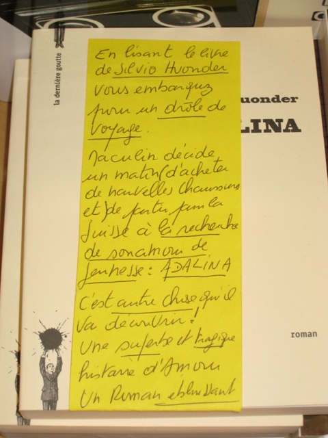 Adalina, de Silvio Huonder, sur les tables de la librairie Quai des brumes à Strasbourg.