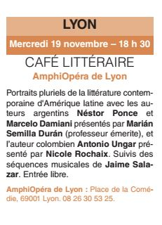 Vous pourrez le rencontrer le mercredi 19 novembre à 18h30 lors d’un café littéraire à l’AmphiOpéra de Lyon, Place de la Comédie.