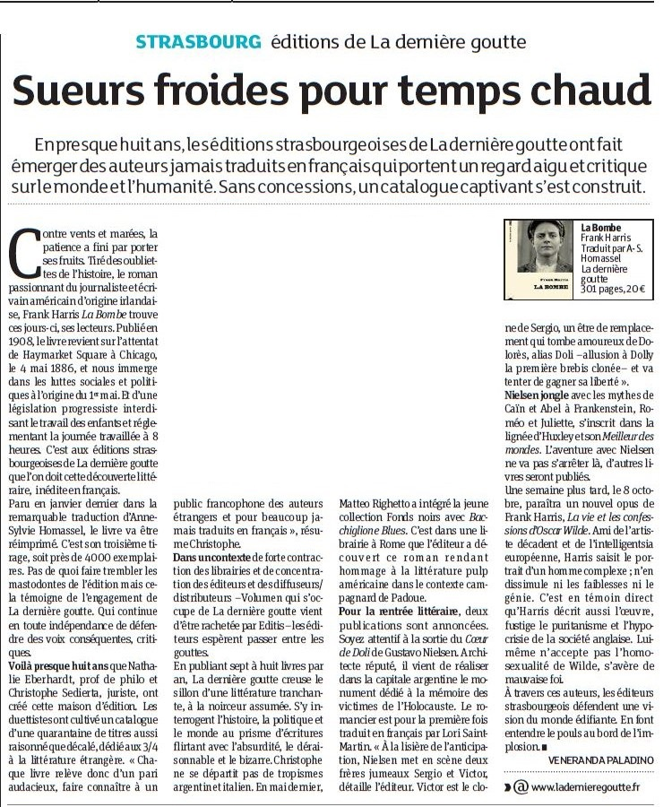 Supplément Culture des Dernières Nouvelles d’Alsace – juillet 2015 (Lire l’article)