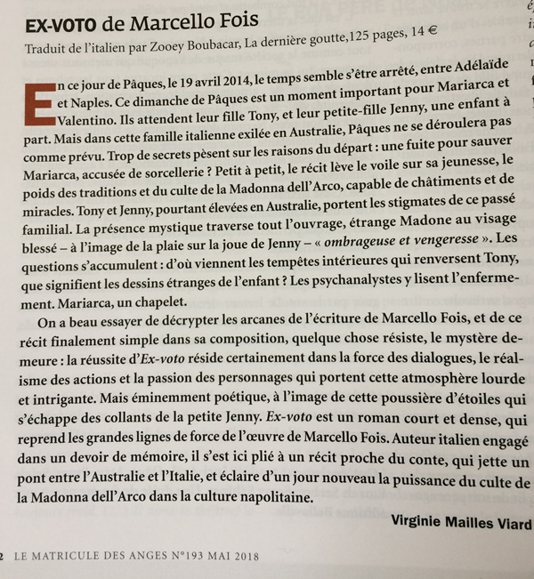 (Virginie Mailles Viard – Le Matricule des Anges – Mai 2018 – Lire l’article)
