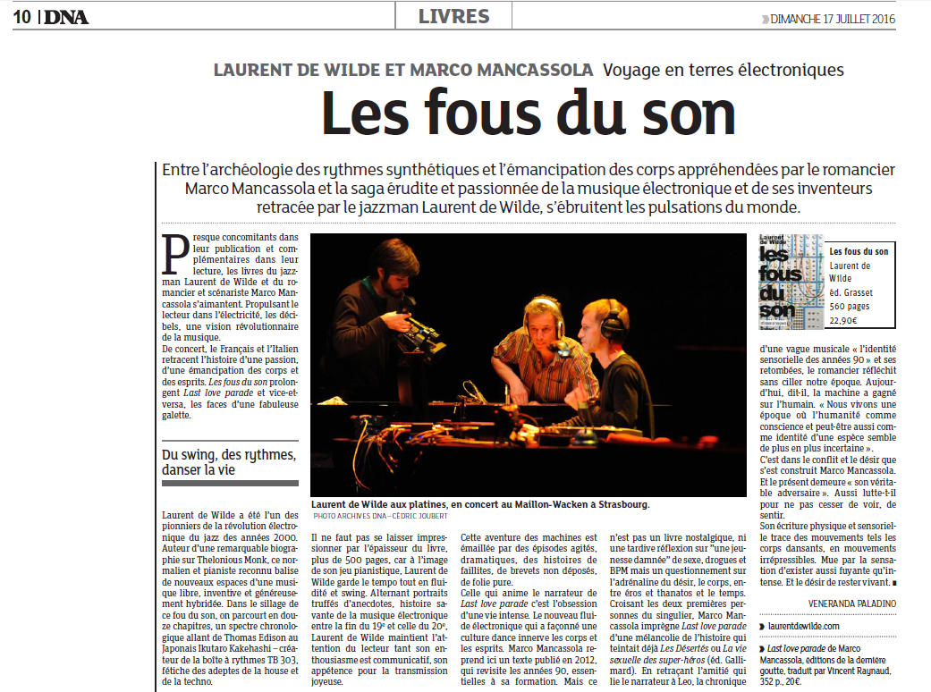 « Ce (faux) roman de Mancassola n’est qu’un prétexte pour nous raconter l’histoire de l’électro depuis le mouvement disco jusqu’à aujourd’hui. L’auteur connaît son sujet. Un bouquin rempli de références, un vrai régal !! »