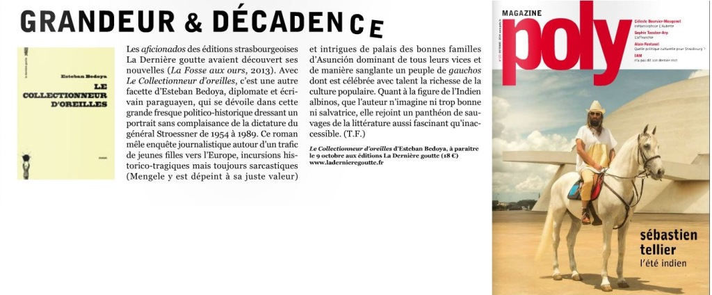 En signant cette fresque vive et burlesque sur la perte de l’innocence, Esteban Bedoya mêle l’enquête historique à la poésie d’un chant d’adieu. Bien loin de n’être qu’une peinture de mœurs, Le collectionneur d’oreilles rend tout autant hommage à une culture populaire décimée par la corruption et le racisme qu’à la splendeur de la forêt profanée. L’auteur conjure ainsi la mauvaise étoile des mal-nés et des opprimés.