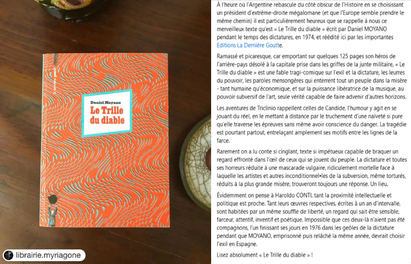 « Daniel Moyano dresse un sombre tableau social de son pays d’origine, étrille les oppresseurs en les ridiculisant, érige tous les arts – et la musique en particulier -, au rang des actes de résistance. »