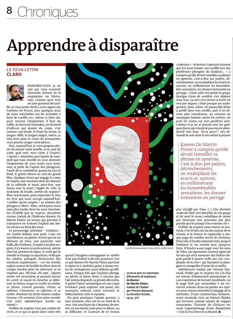 « On en oublie parfois soi-même de respirer, happé par les gouffres où se débat Giuliano et bénissant cet excellent roman tant pour la profonde émotion qu’il dégage que pour sa brièveté salvatrice. »