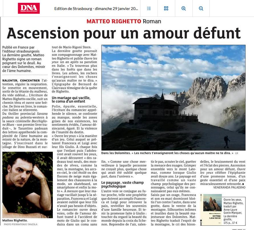 « Matteo Righetto fait preuve d’une habileté narrative éblouissante qui illustre les sujets de son roman : distance, responsabilité, implication dans la vie d’autrui, tout est là. »