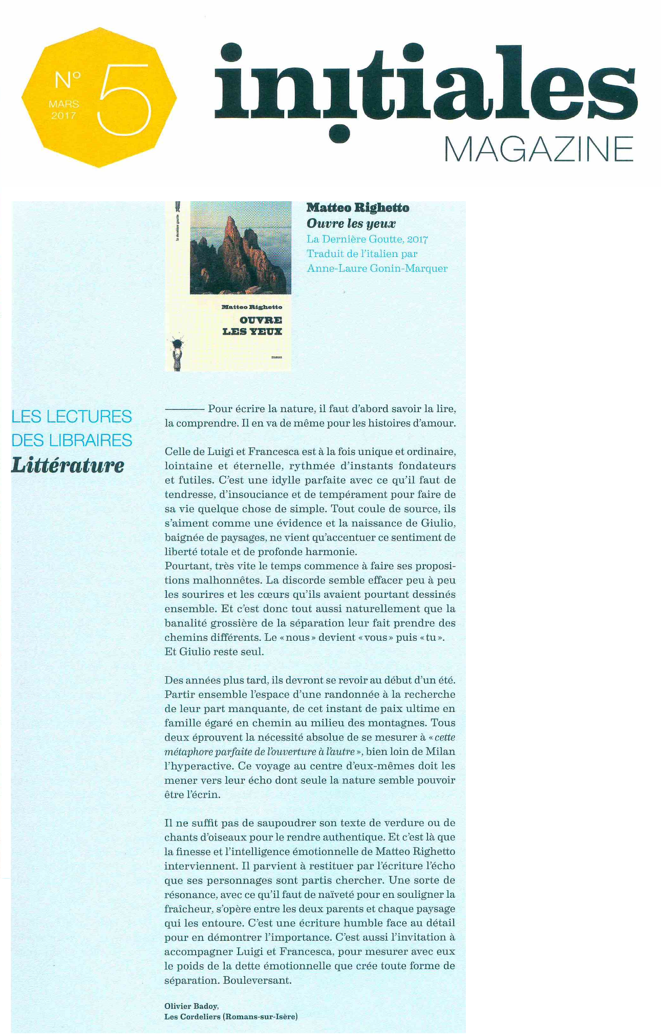 (Initiales Magazine – Olivier Badoy – Librairies Les Cordeliers – Romans-sur-Isère – Coup de coeur)