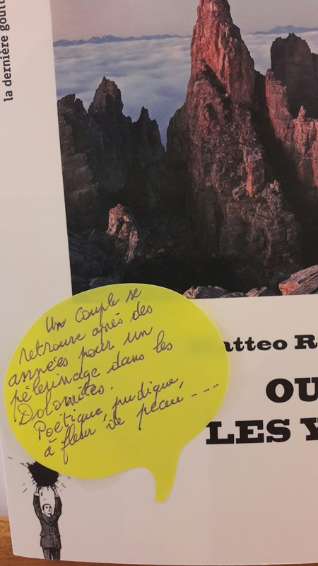« Un livre qui parle à chacun, qui sonde, qui donne à profiter de chaque instant de la vie avant qu’il ne soit trop tard, qui donne à la nature, à la majestueuse montagne sa place, toute sa place, révélatrice de l’âme. Que l’on se sent petit devant tant de majesté. »